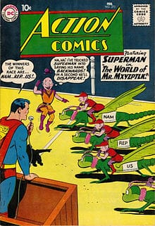 And then there are the villains. In the comics of my day, the villains were there to develop the humor. Except for Luther, they were aliens and thus didn’t need a real motive for their mischief. Take Mr Mxyzptlk, a favorite of mine and of may others. He meant no harm, but was an alien from the 5th dimension who just wanted to have fun (don’t we all?). Like Superman, Mxyzptlk was super powerful, and Superman had to defeat him with his wits.