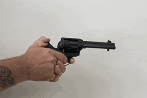 A single action revolver requires cocking by that can be done with one hand; a double action doesn’t need any cocking. Gif from ammuniotndepot.com