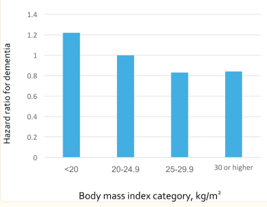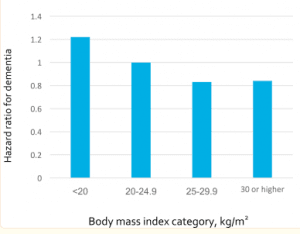 It could be that high bmi protects from dementia. Either that or the diseases that cause weight loss cause dementia. It’s debated here.