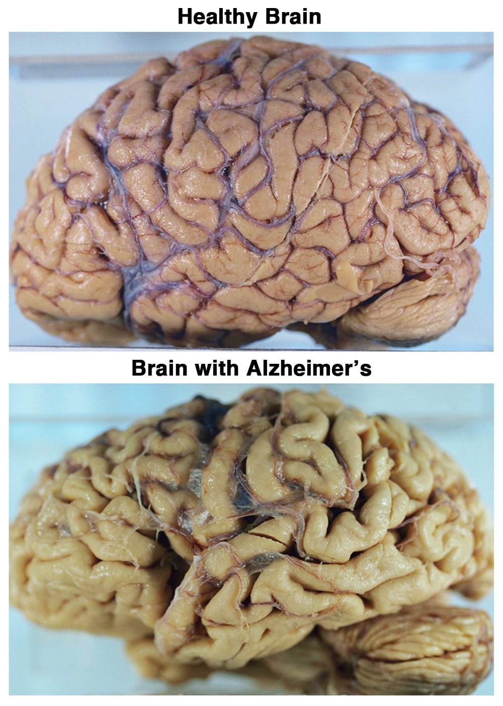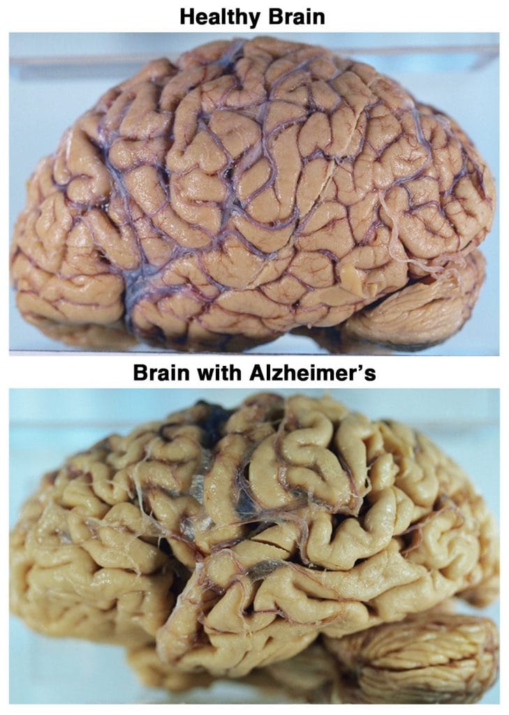 The visual difference between an Alzheimer brain and a normal brain is that the former has shrunk. Maybe fat is relevant, fat body leads to a fat brain, and less AZ, maybe?