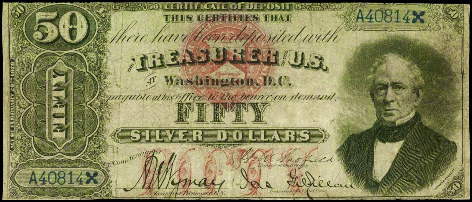 For nearly fifty years, Edward Everett’s face graced the Fifty dollar silver certificate. Now the world little notes, nor long remembers him. So passes glory.