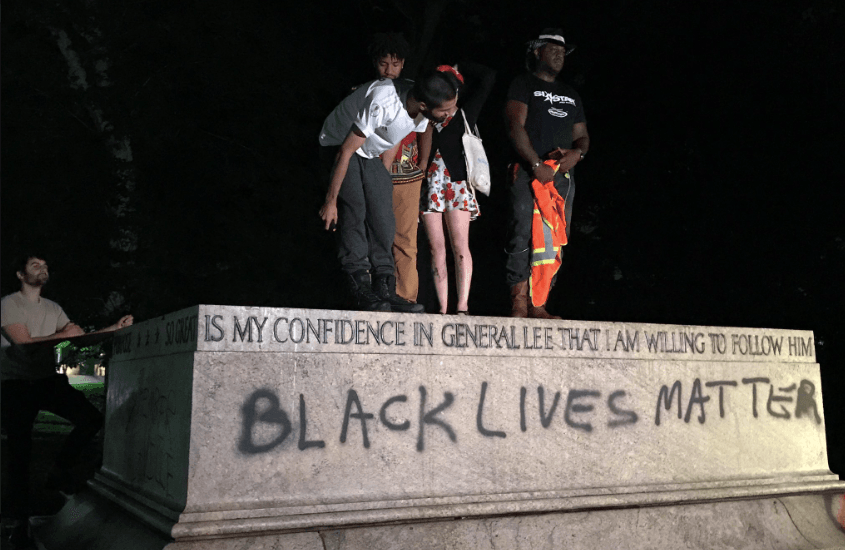 As for my guess at interpretation of the statues themselves. I’m inclined to suggest that the statues and their inscriptions do not appear racists to me, so much as soldierly. The statues were largely erected between the Spanish-American war and WWII with soldierly (to my eyes) comments. Baltimore monument to Jackson and Lee, reads on one side: “STRAIGHT AS THE NEEDLE TO THE POLE JACKSON ADVANCED TO THE EXECUTION/ OF MY PURPOSE” and on the other side: “SO GREAT IS MY CONFIDENCE IN GENERAL LEE THAT I AM WILLING TO FOLLOW HIM BLINDFOLDED.” Another Baltimore inscription: “THEY FOUGHT AS GENTLEMEN.” To me this latter is a swipe at Sherman and Sheridan, who did not. Removing these statues is a swipe at the honor of southern soldiers. The statues now read “BLACK LIVES MATTER,” a slogan I read as anti-police, anti-Trump, and anti-white.