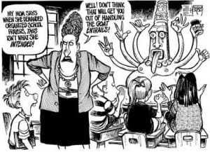 All these relationships had a surreal character. The relationships are funny because they are more real than reality. They also presented a simpler form of humor in that the lowly usually win, while the high and talented usually lose. Reggie commonly loses, as does Weatherbee. Then things began to change in the 2000’s when two token black characters were added: a top scholar/athlete, Chuck Clayton, and his dad, Floyd (or Harry) a wise, athletic, co-coach. These are characters without major flaws, and as such they are not funny. If a writer feels he must include a character like this, a writer should use him as a straight-man, Zeppo Marx for example. And even Zeppo Marx is presented as having a horrible flaw. In Marx Bros. movies, Zeppo is presented as being Groucho’s son. Comedy is built on flawed characters like this, who succeed, and on arrogant ones who fail. With the Claytons, you’re left wondering what comedy do they bring to the situation. Also, why do these individuals tolerate crazy Moose on the team?