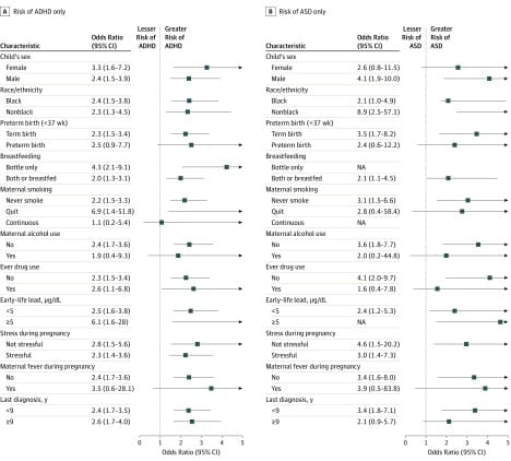 The higher cohorts of blood Tylenol is associated with higher risk of ASD and ADHD for every subgroup.